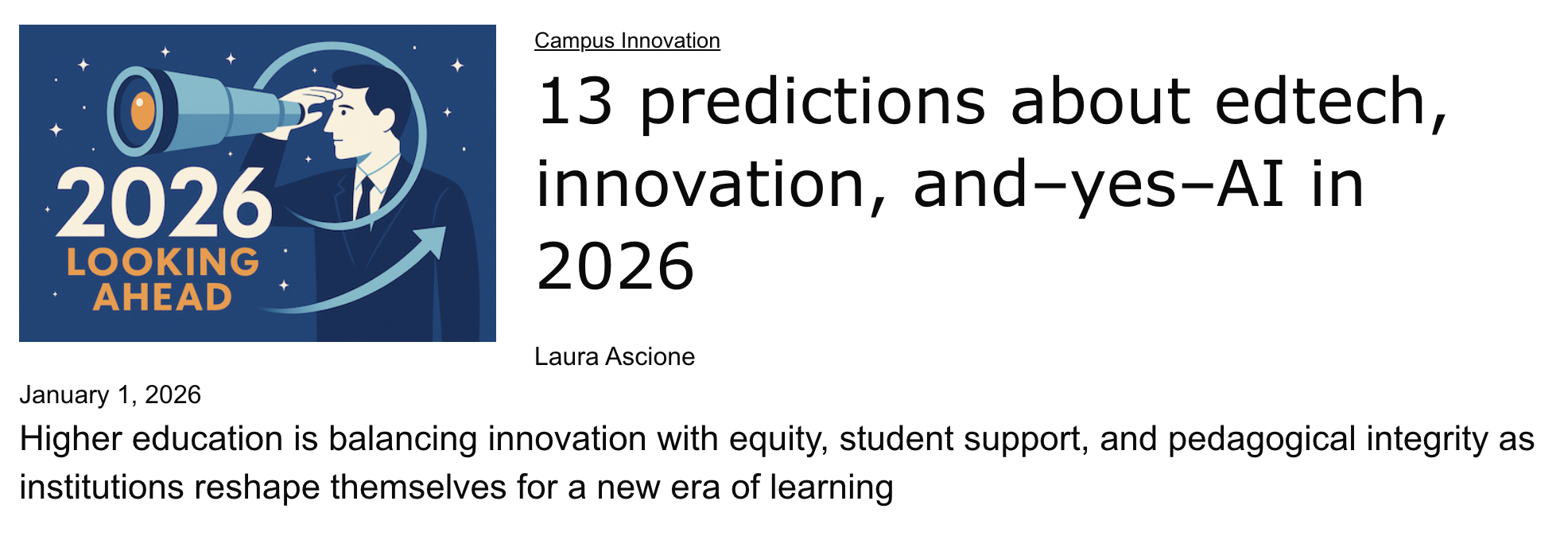 CRTWC Featured in eCampus News:13 predictions about Edtech, Innovation, and–yes–AI in 2026