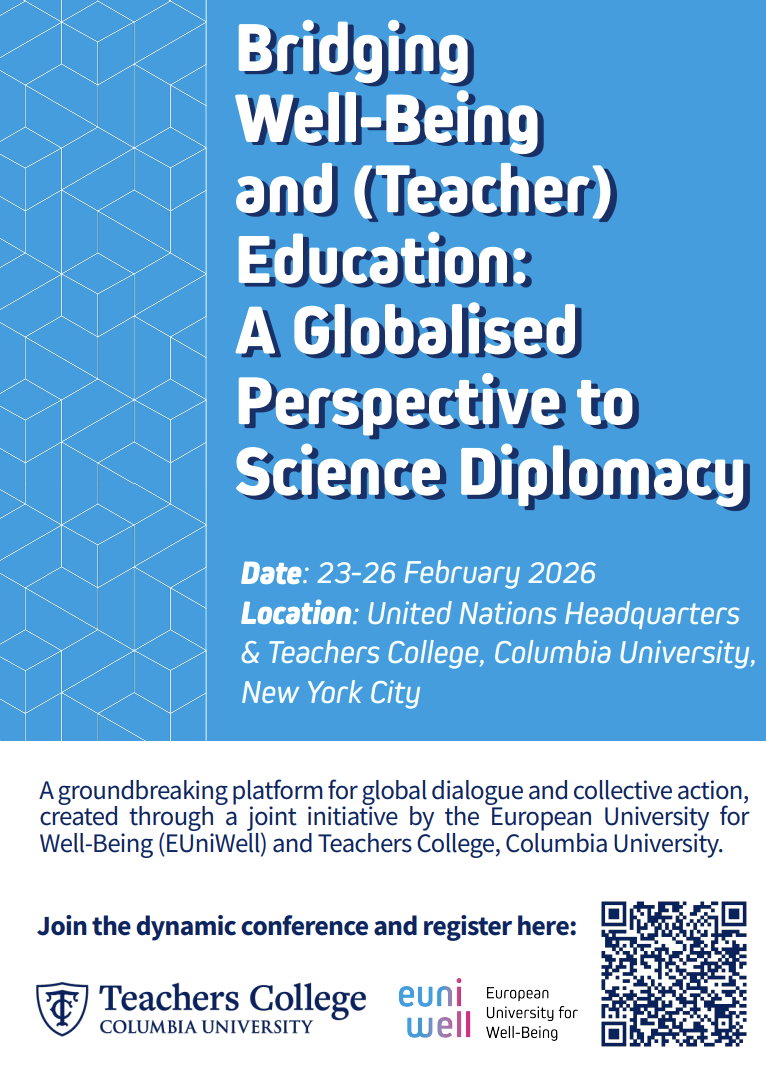 The conference is centered on the theme, “Bridging Well-being & (Teacher) Education: A Globalized Perspective to Science Diplomacy,” bringing together educators, researchers, policymakers, and practitioners from around the world to explore urgent issues facing the teaching profession and to advance strategies that strengthen teacher well-being. To learn more and register, check out the QR code provided in the conference flyer below and explore the following website.
